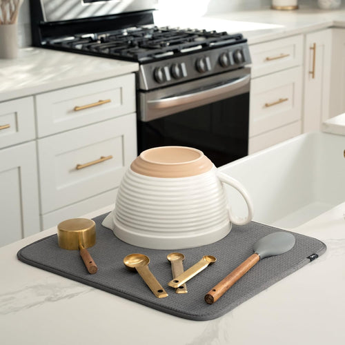 Dual Sided Microfiber Absorbent Kitchen Dish Drying Mat (Grey) 18" x 16"